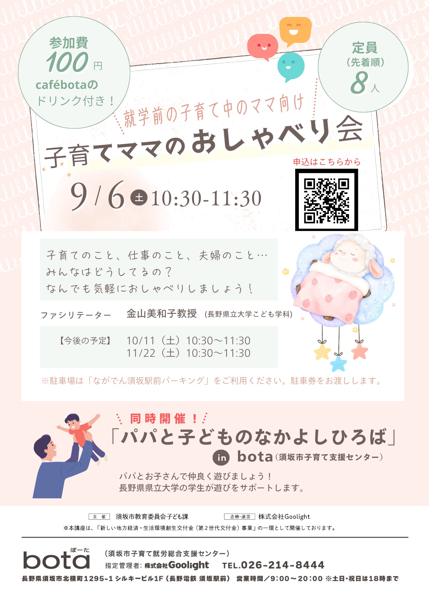 「パパと子どもの仲良し広場」in bota(須坂市子育て支援センター)も行います!!