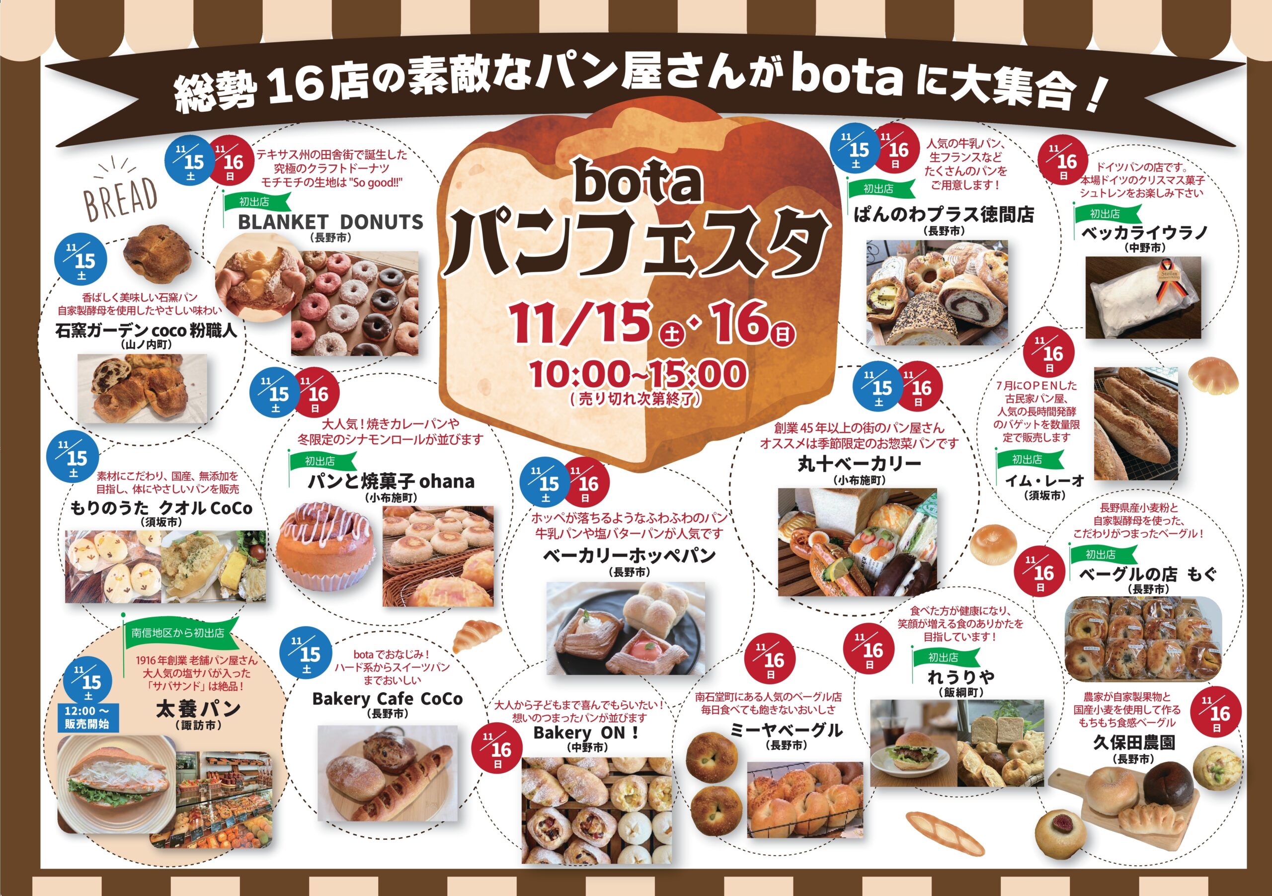 長野県内から16店舗のパン屋さんにご出店いただき、