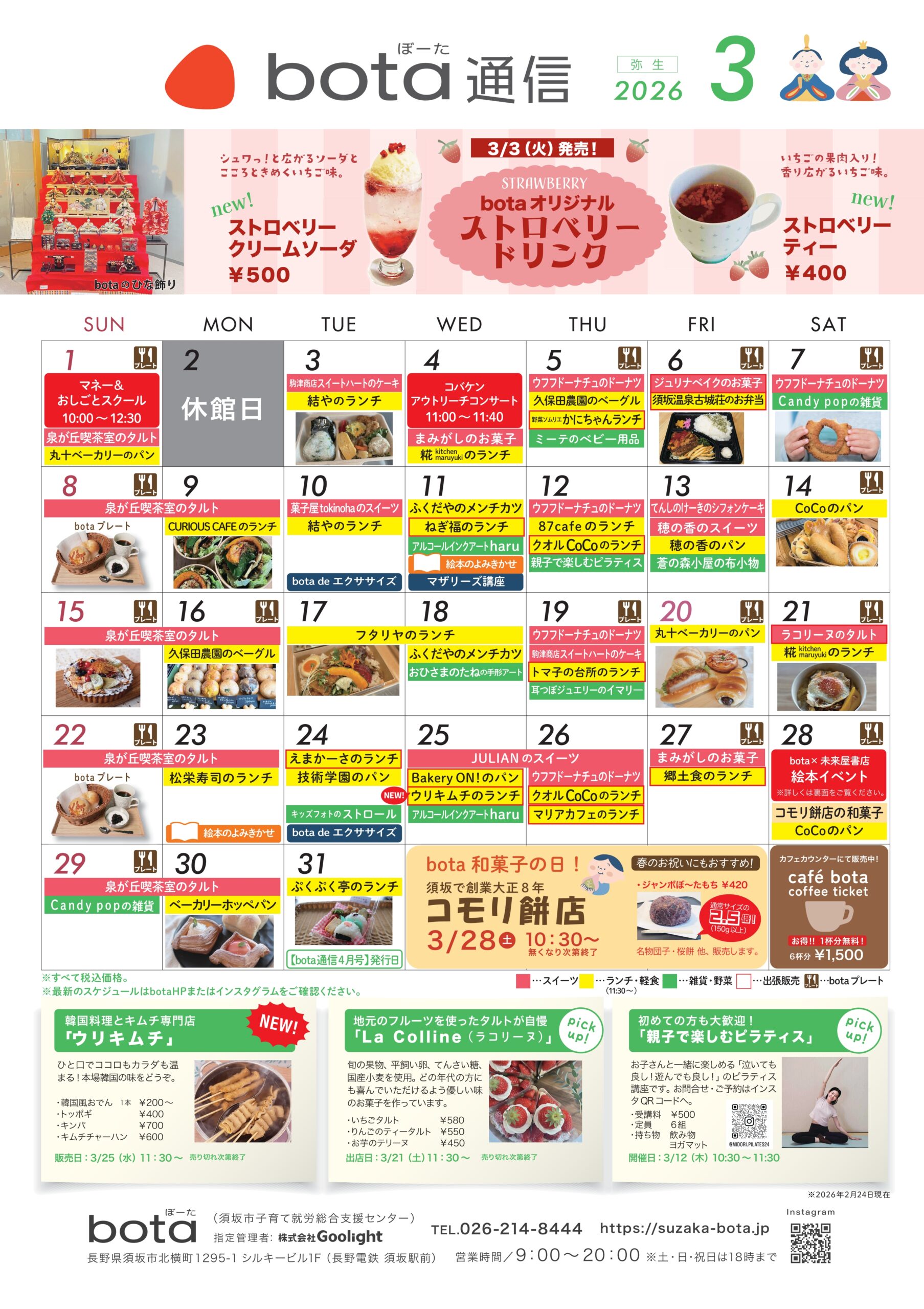 【スケジュール確認はこちら】bota通信3月号 – bota