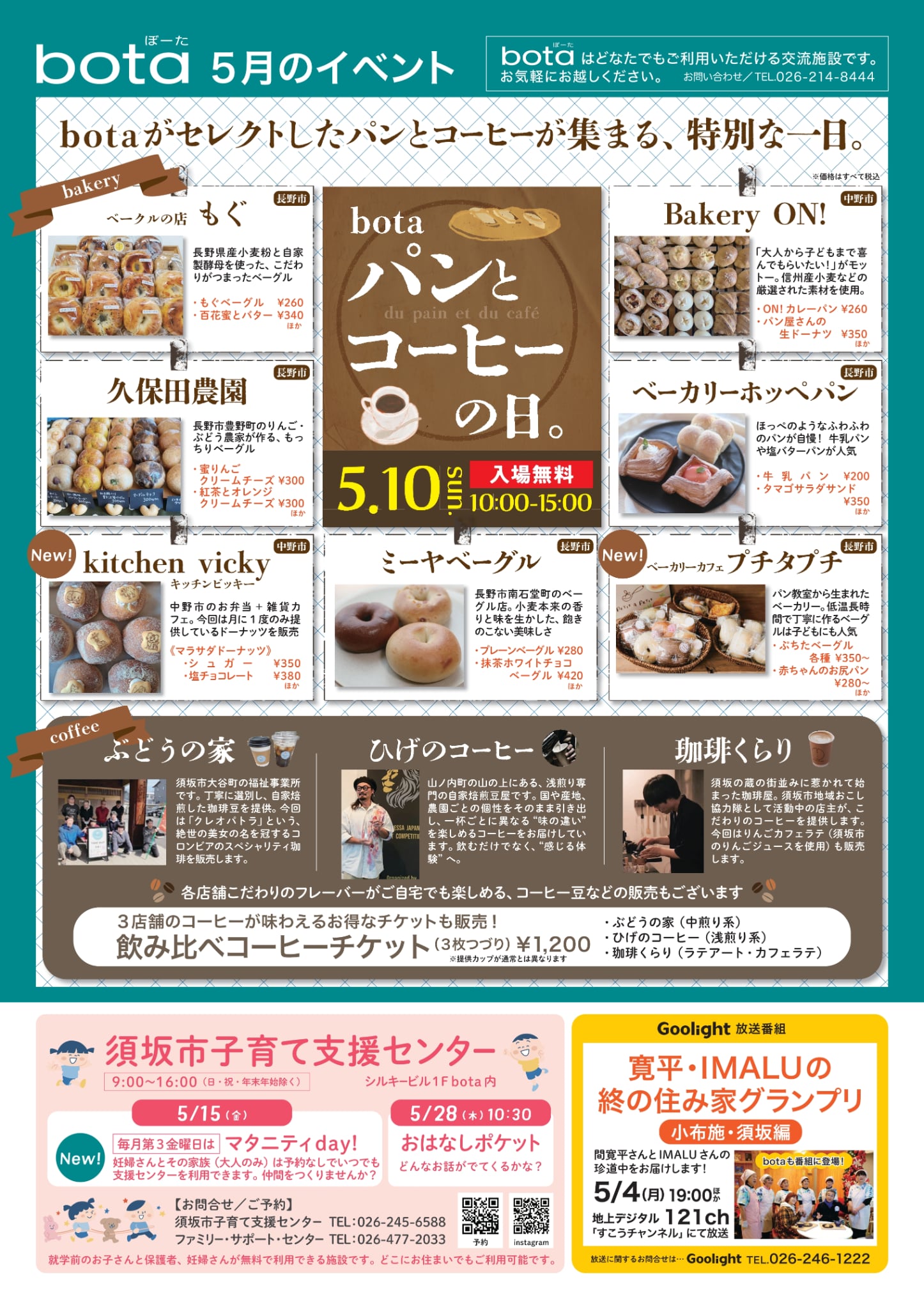 bota通信5月号が発行されます。cafébotaの販売やイベントの確認はこちらからどうぞ。