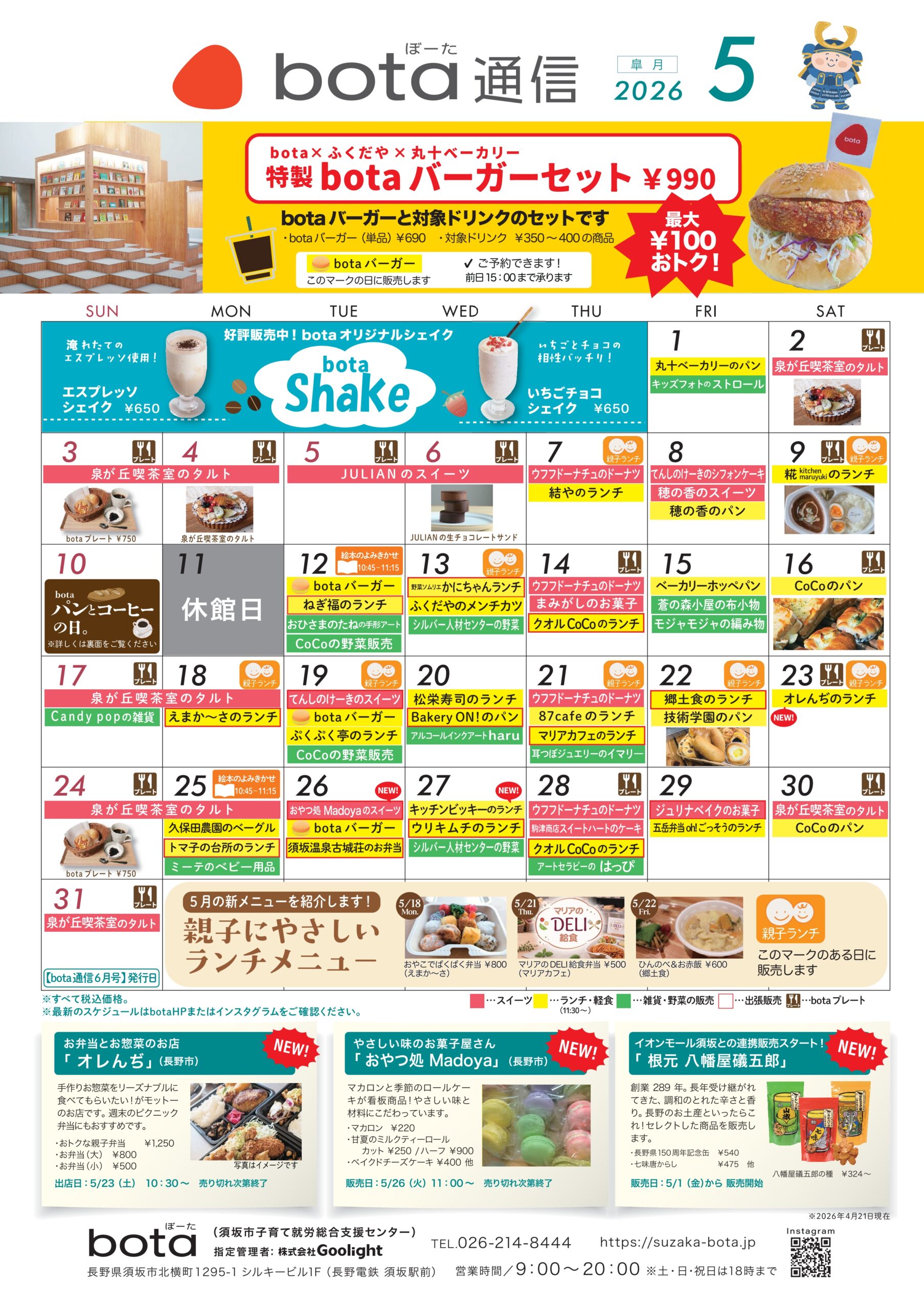 【スケジュール確認はこちら】bota通信5月号 – bota