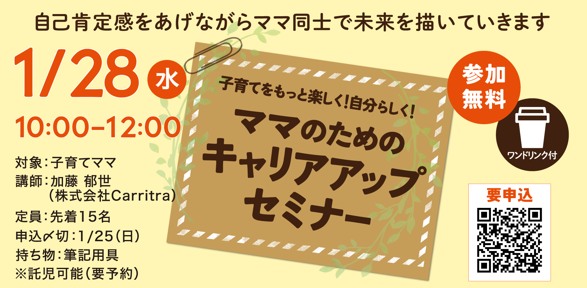 【ママのためのキャリアアップセミナー開催のお知らせ】
